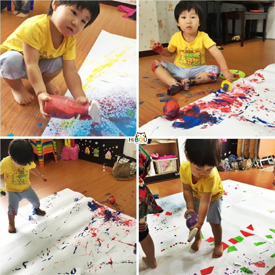 Rui兩歲多時曾在台北家附近參加過幼兒的集體美術課,在教室裡盡情的在大畫紙上用各種道具玩顏料,非常的有趣!