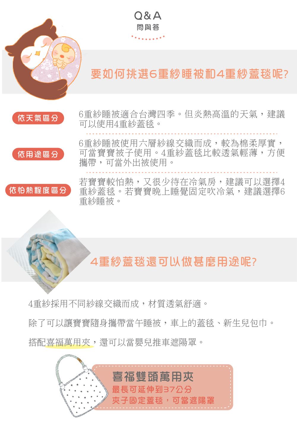 - 【OPP袋環保包裝】【舒眠,感受得到】想像一條密不透風的被子蓋在身上,悶熱、不舒服的感覺讓寶寶想踢被子,這時候有蓋跟沒蓋一樣。4重紗蓋毯由不同粗細紗重疊織成布料,形成空氣隔層,不僅非常透氣,也很親膚。一毯多用,可以當睡毯、遊戲毯、外出毯、包巾,溫柔淡雅的色彩,可以安穩寶寶情緒。
