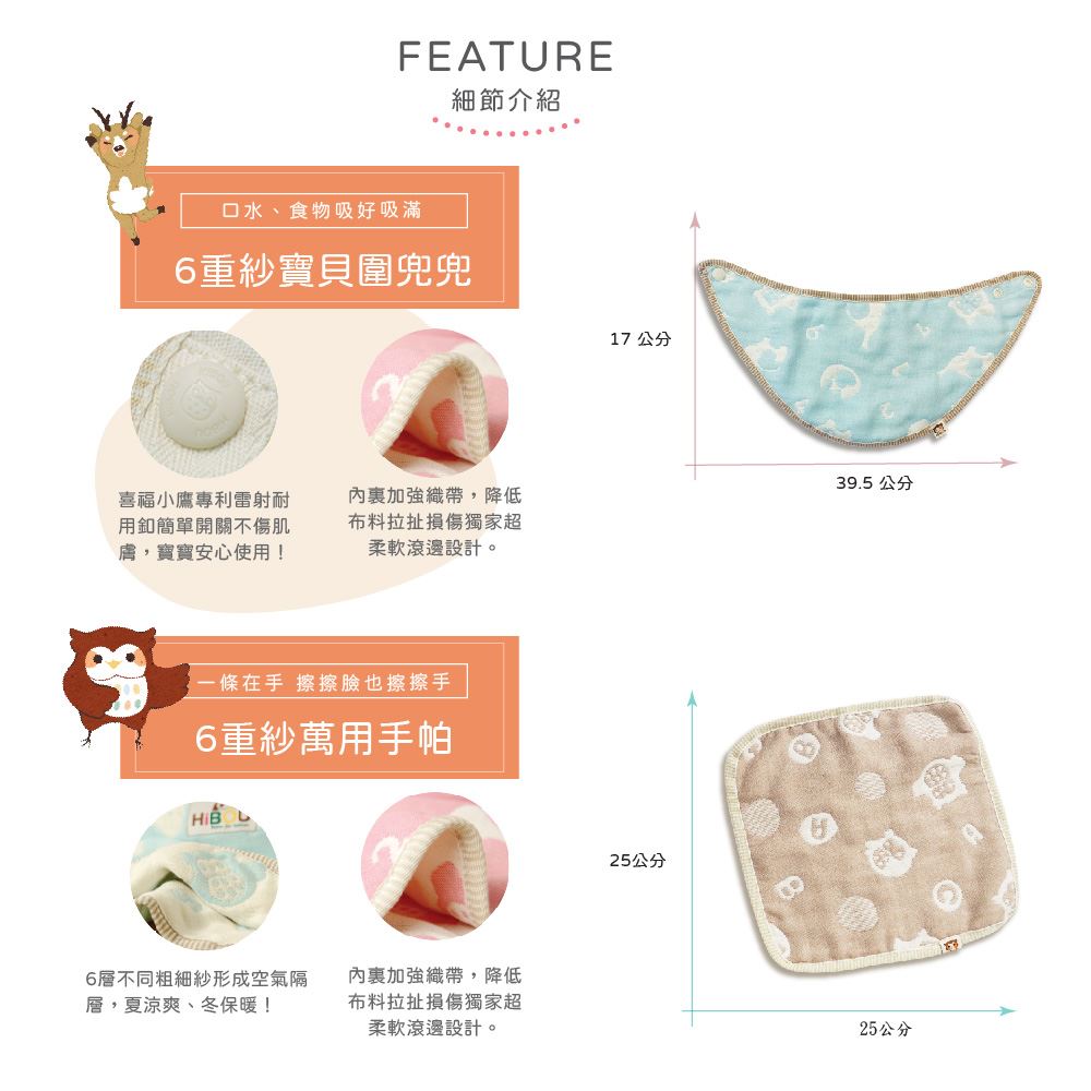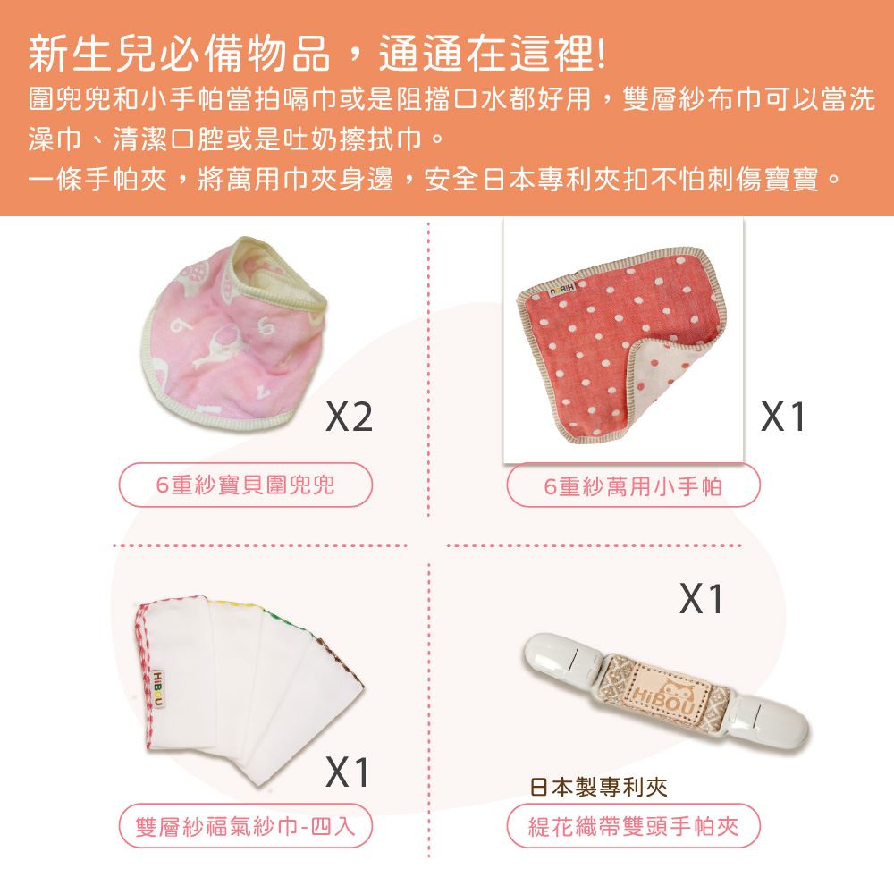 初生必備彌月禮盒∥6重紗圍兜兜+萬用小手帕+雙頭手帕夾+紗布巾無紙袋、卡片環保簡易包裝