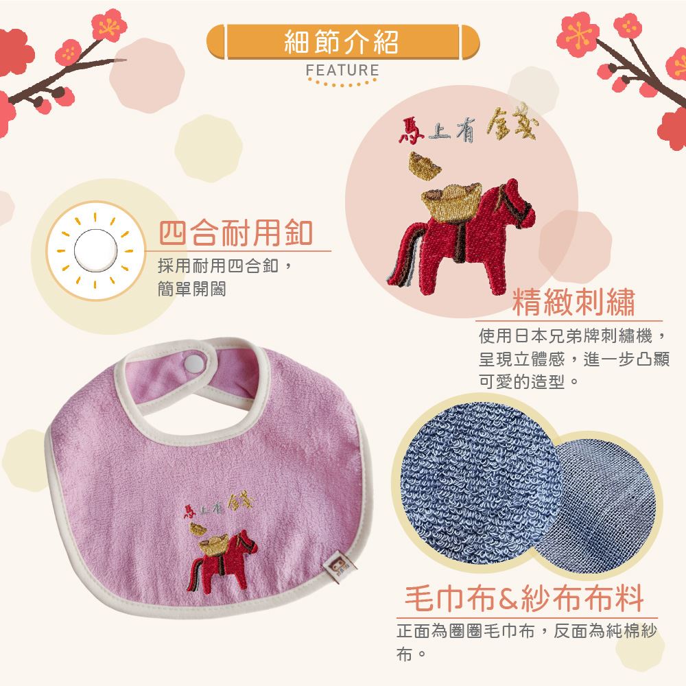 2026 馬年限定|喜福 HiBOU 純棉刺繡嬰兒圍兜兜-馬上有錢