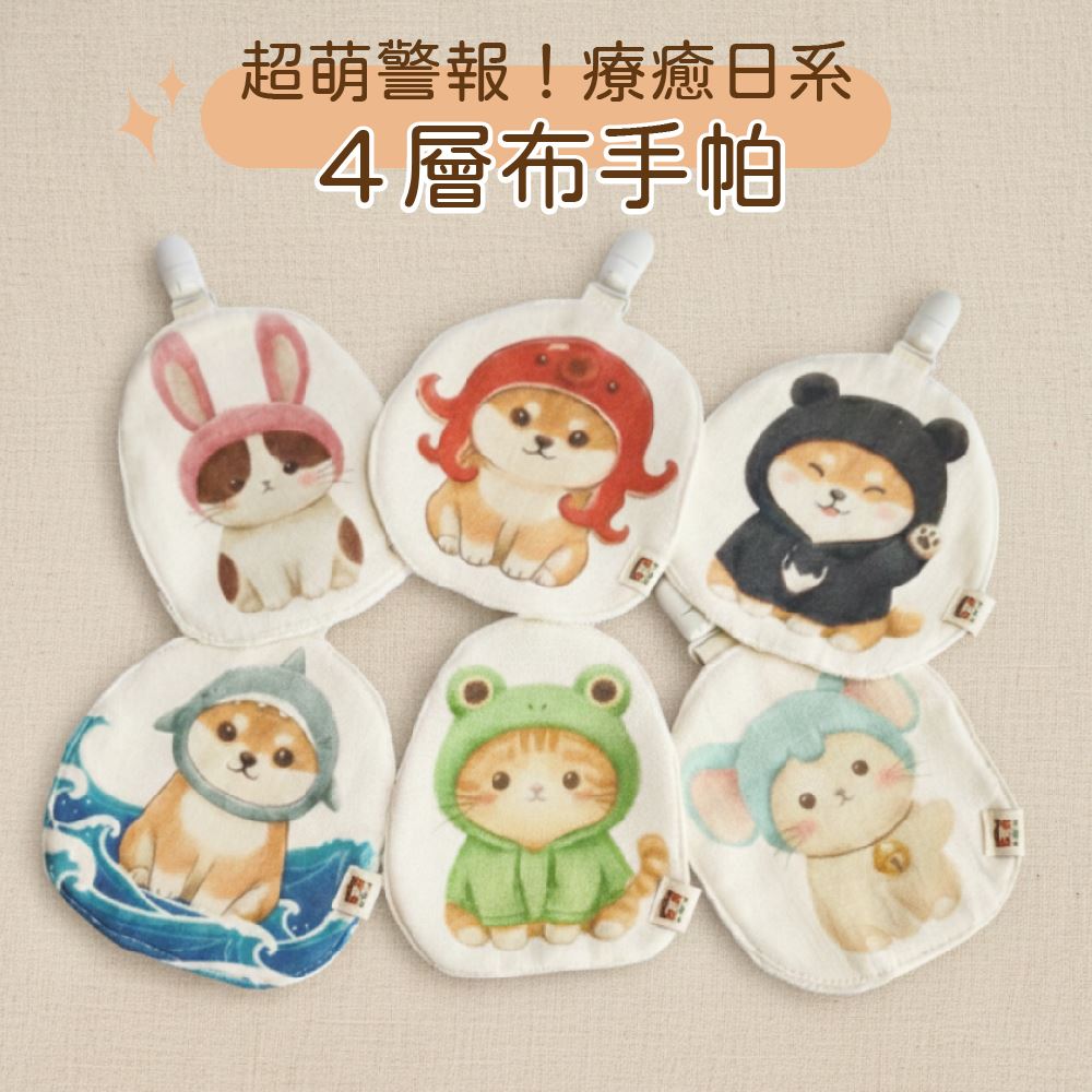 【台灣製】兒童幼兒園必備療癒系呆萌動物紗手帕 (可夾衣)|純棉吸水/日本專利夾/幼兒口水巾/擦手巾